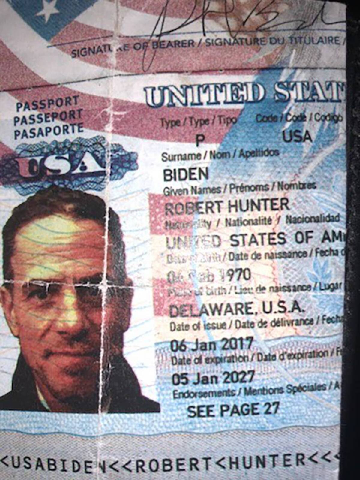 - Documentos personales que incluyen pasaporte de Hunter, licencia de conducir, tarjeta de seguro social, tarjetas de crédito y extractos bancarios.