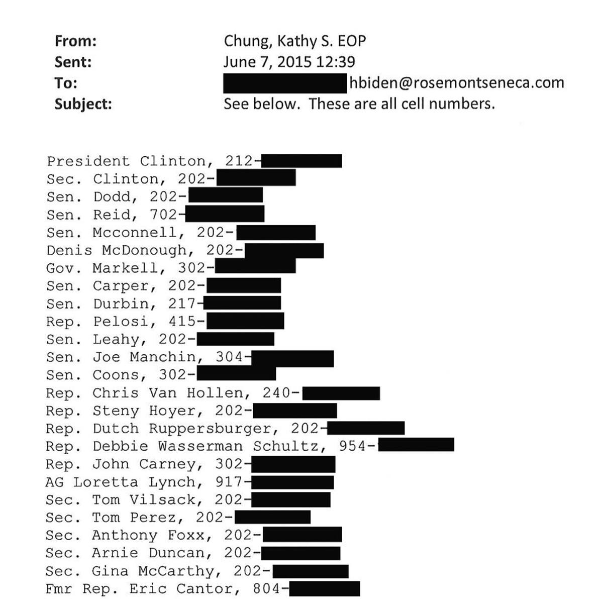 - Números móviles del ex presidente Bill Clinton, su esposa Hillary y casi todos los miembros del gabinete del ex presidente Barack Obama.