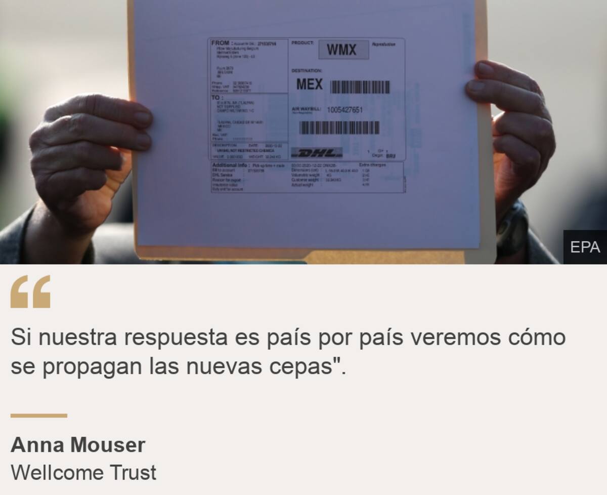 Anna Mouser, responsable de políticas y promoción de vacunas del Wellcome Trust, advierte en entrevista con BBC Mundo que si las vacunas contra el coronavirus no llegan a todo el mundo, incluso las poblaciones vacunadas de los países más ricos estarán amenazadas por nuevas mutaciones.