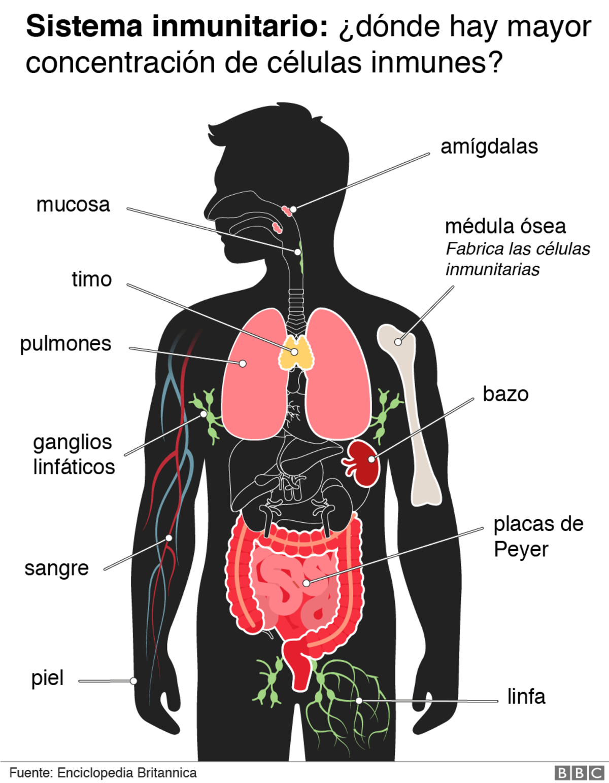 "Hay una parte del sistema inmunológico que llamamos inmunidad innata, que responde de inmediato", dice Dunn-Walters. Esto ofrece barreras físicas a las infecciones, como la piel, así como ciertos tipos de glóbulos blancos y señales químicas.