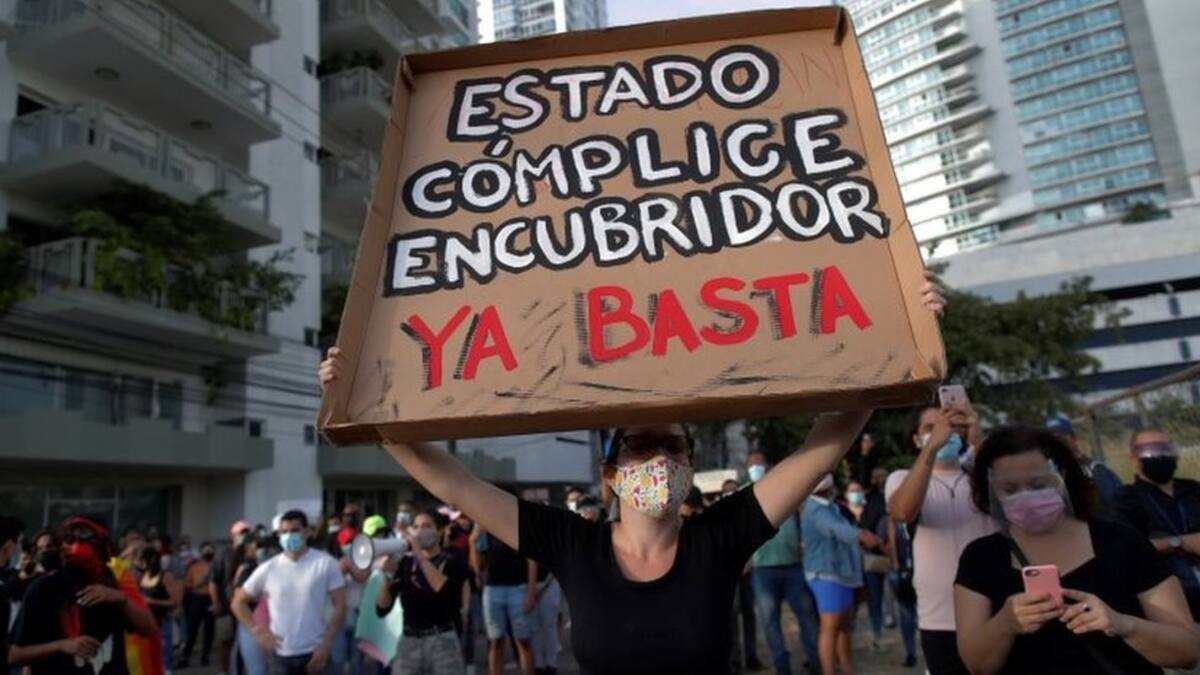 "Estado cómplice y encubridor, ya basta", rezaba uno de los muchos carteles vistos en Ciudad de Panamá frente a la sede de Senniaf.