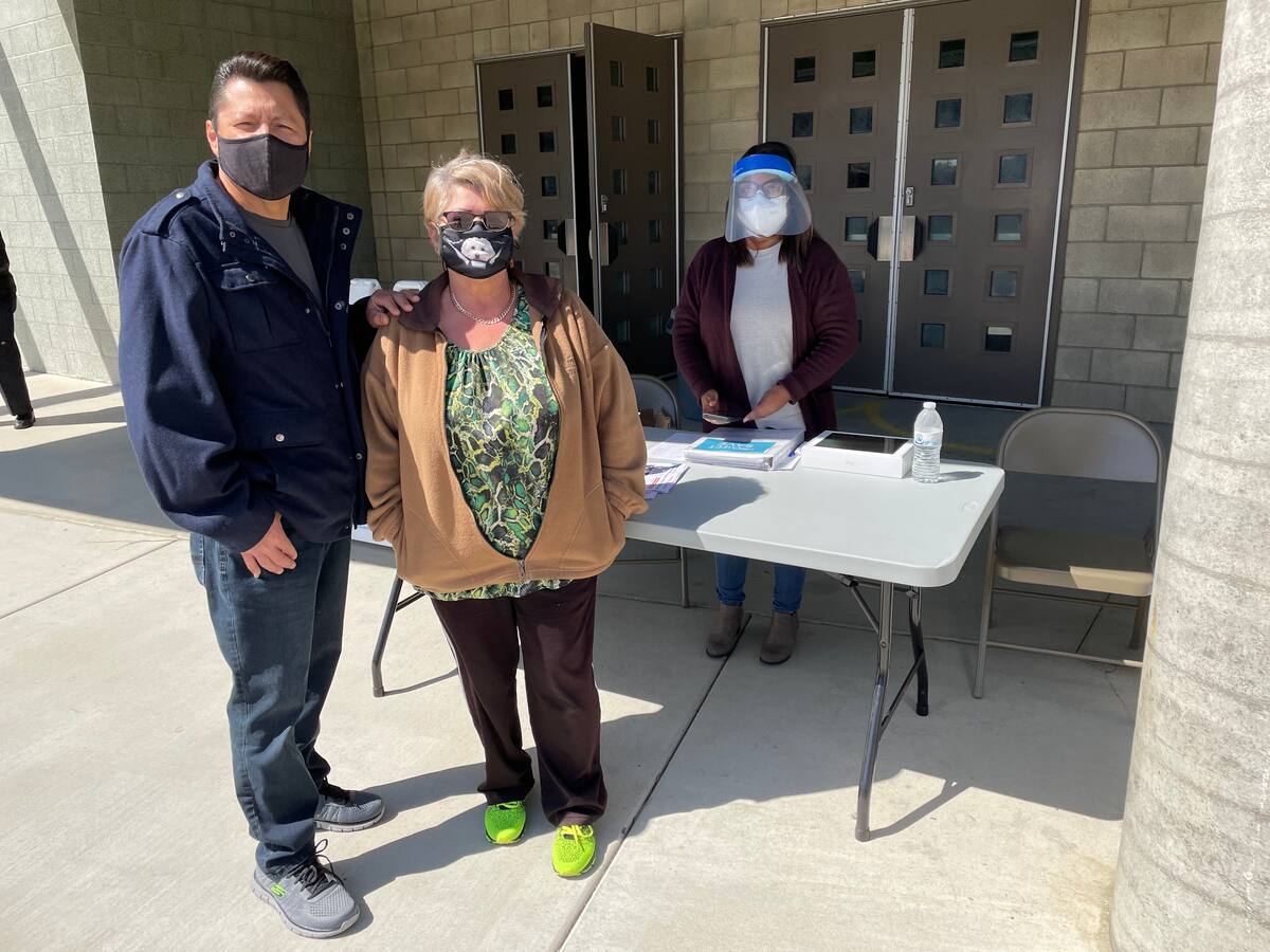 Imperial Beach, CA.- Desde las instalaciones de una escuela en Imperial Beach, una voluntaria parte de la Coalición de Salud Latina de San Diego ayuda a los residentes del sur del condado a que obtengan su vacuna contra el coronavirus.
