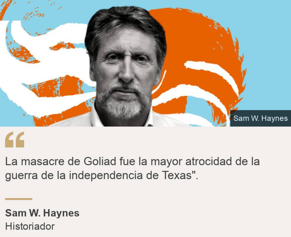 "En muchos aspectos, tendemos a recordar el asedio de El Álamo —la expresión Remember the Alamo (recuerden El Álamo) se volvió muy popular— pese a que la mayor atrocidad de la guerra de la independencia de Texas fue la masacre de Goliad", dice Haynes.
