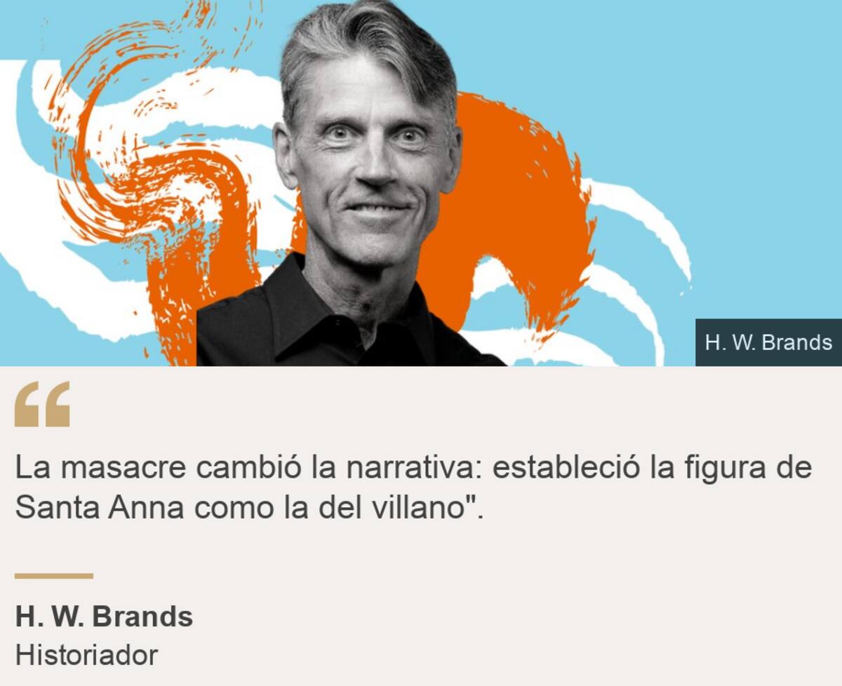 "A muchos estadounidenses, sobre todo de estados lejanos a Texas, no les interesaba especialmente la guerra que se estaba librando aquí. Pero cuando supieron de la masacre —en la que murieron principalmente estadounidenses— la figura de Santa Anna quedó establecida como la del villano".