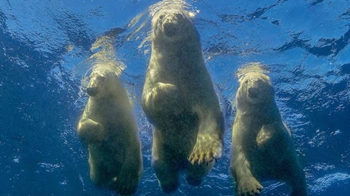 Sería la primera vez que se fotografiase a una osa polar con dos cachorros en esas circunstancias.