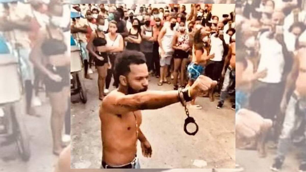 Decenas de personas siguieron al rapero hasta la sede Movimiento San Isidro, el grupo de jóvenes artistas al que pertenece, e iniciaron una protesta callejera en la que cantaron consignas por el cambio y en contra del presidente Miguel Díaz-Canel.