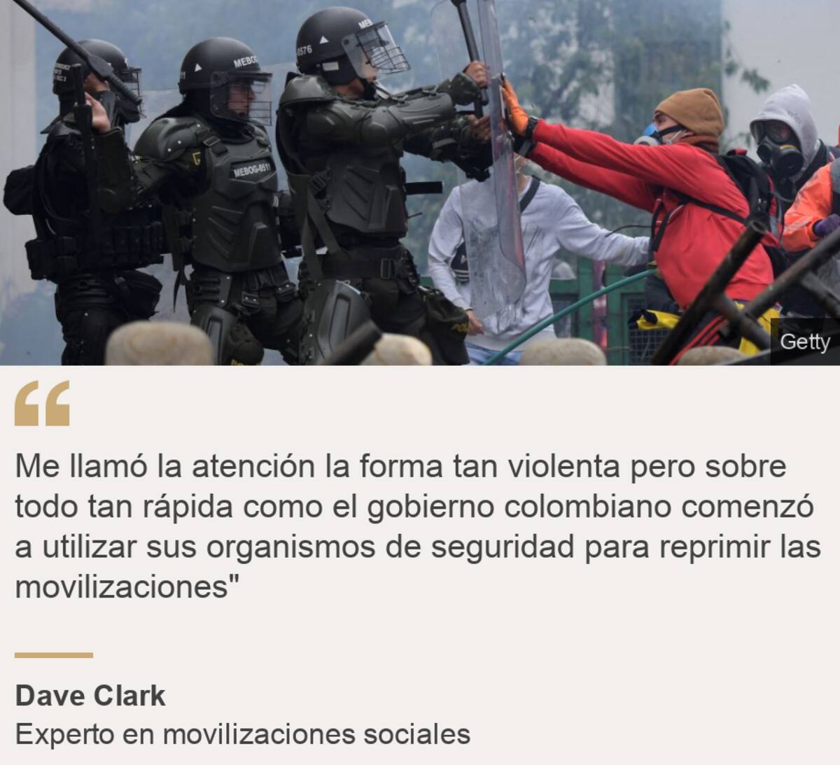 "Esa respuesta por supuesto, redunda en una movilización mucho más intensa que las anteriores que se habían presentado en 2019, donde también hubo una represión, pero no de la forma que estamos viendo", apunta Clark, en diálogo con BBC Mundo.