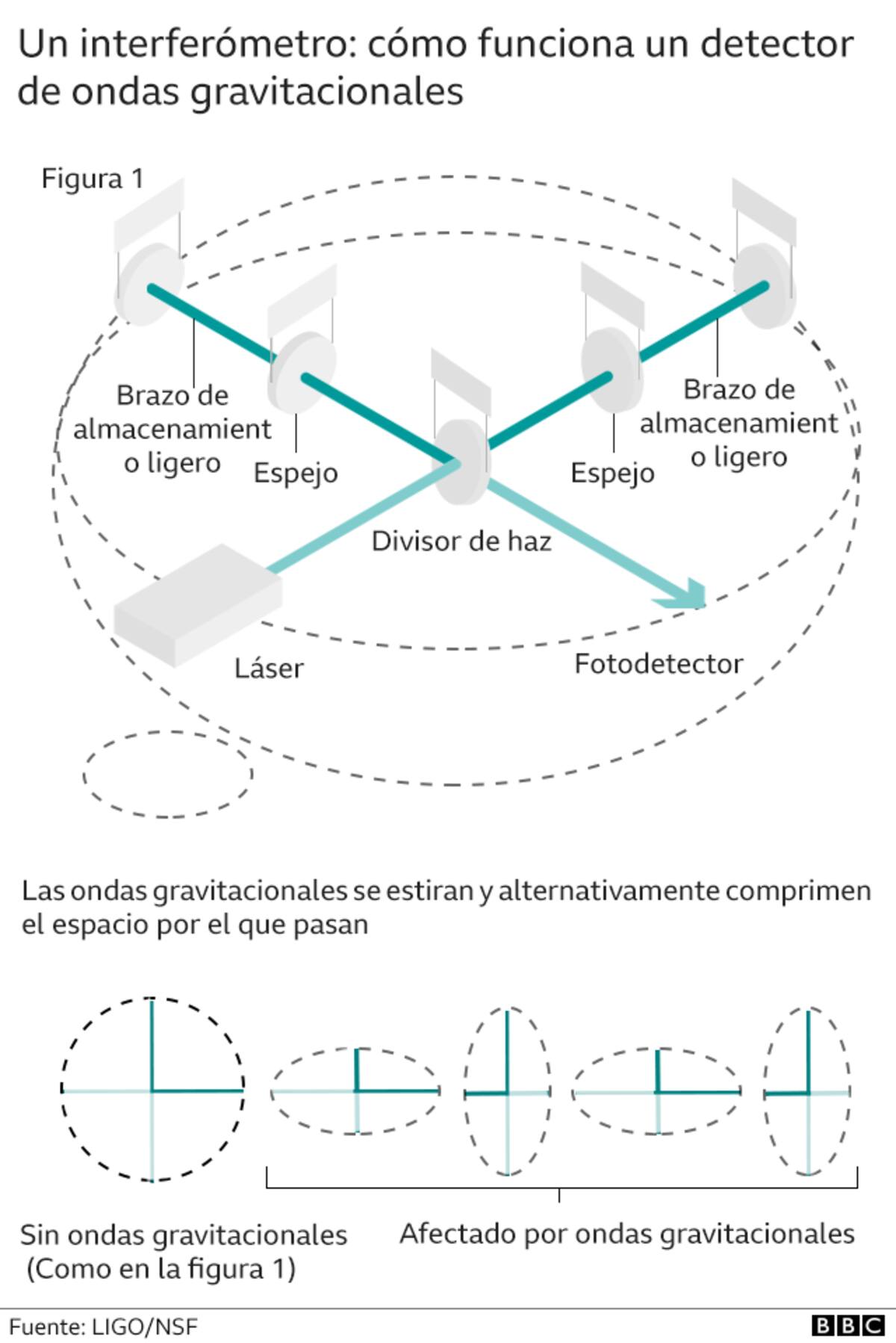 Estas llamadas ondas gravitacionales viajan cientos de millones de años luz a través del espacio y fueron registradas por detectores en el estado de Washington y Luisiana, en EE.UU., y el detector Virgo ubicado en el centro de Italia.