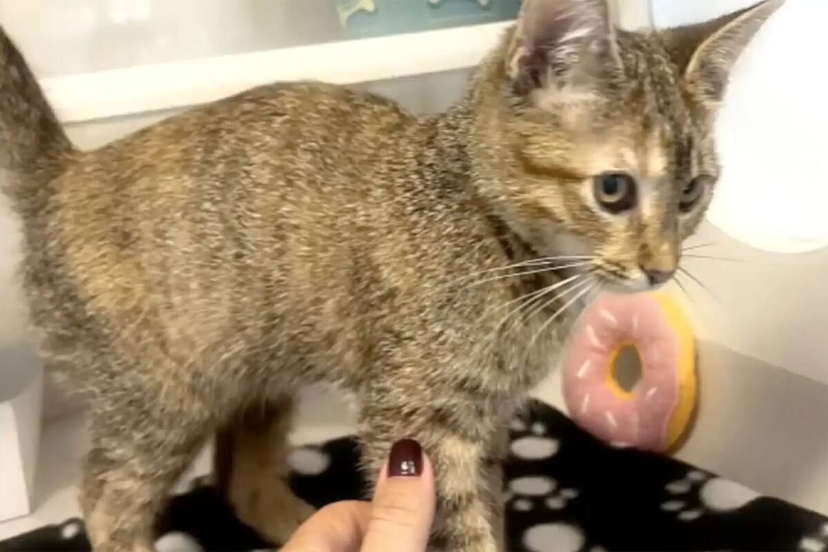 Ella dijo que envolvió a la gatita en una toalla y completó un informe policial.