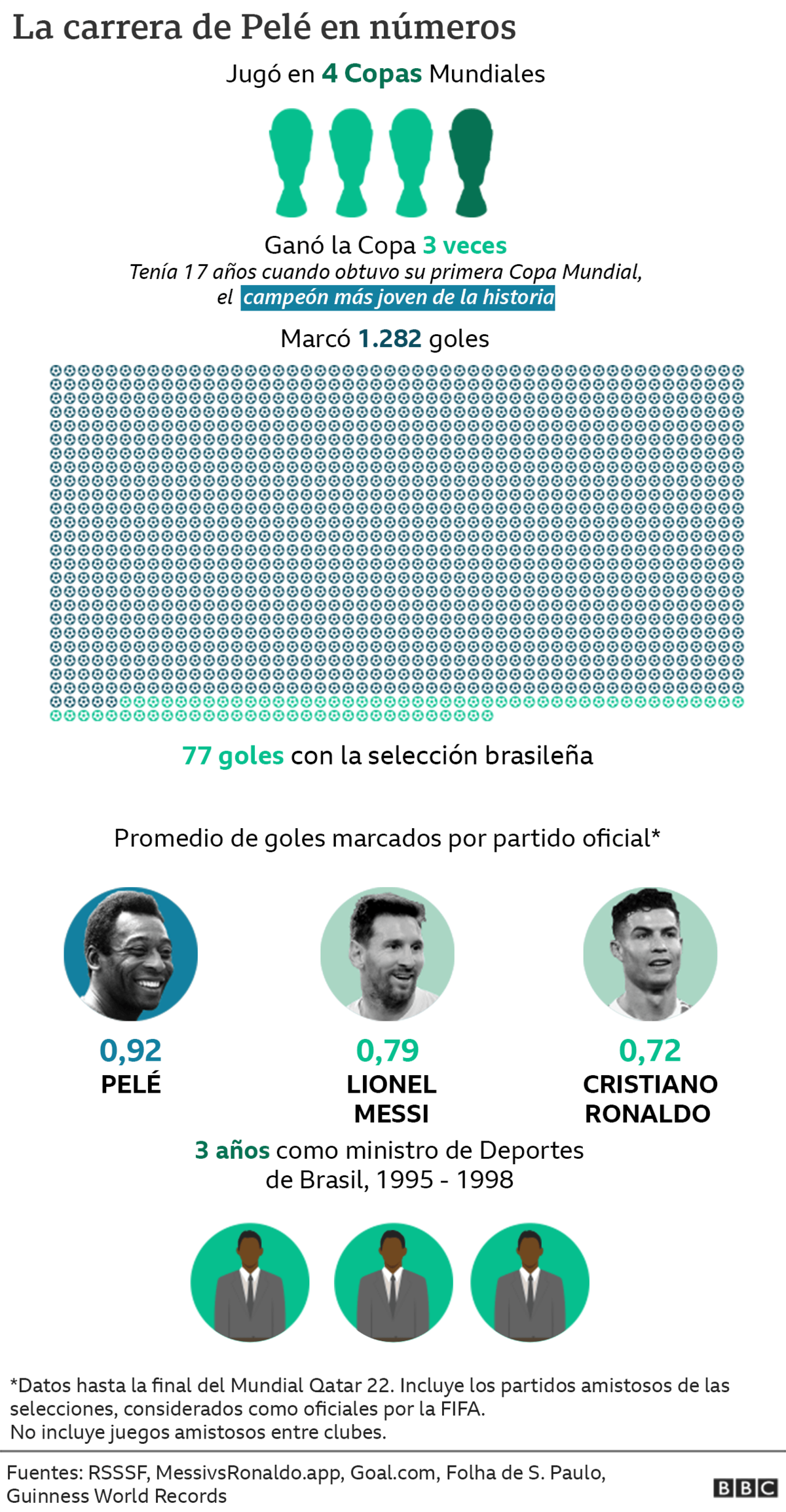El Rey contabilizó 1.283 goles a lo largo de su carrera profesional, incluyendo 757 reconocidos por la FIFA al haber sido anotados en partidos oficiales.