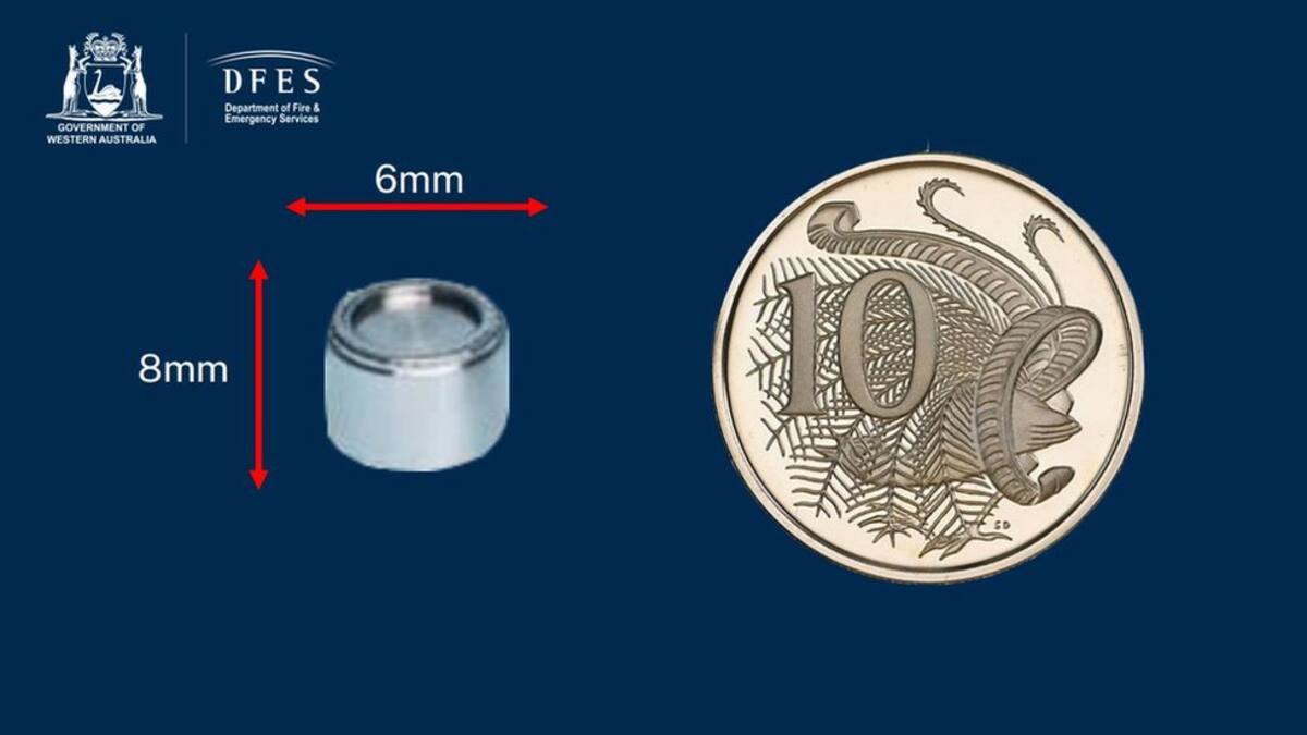 El DFES ha publicado una ilustración del objeto, que mide 6 mm por 8 mm.