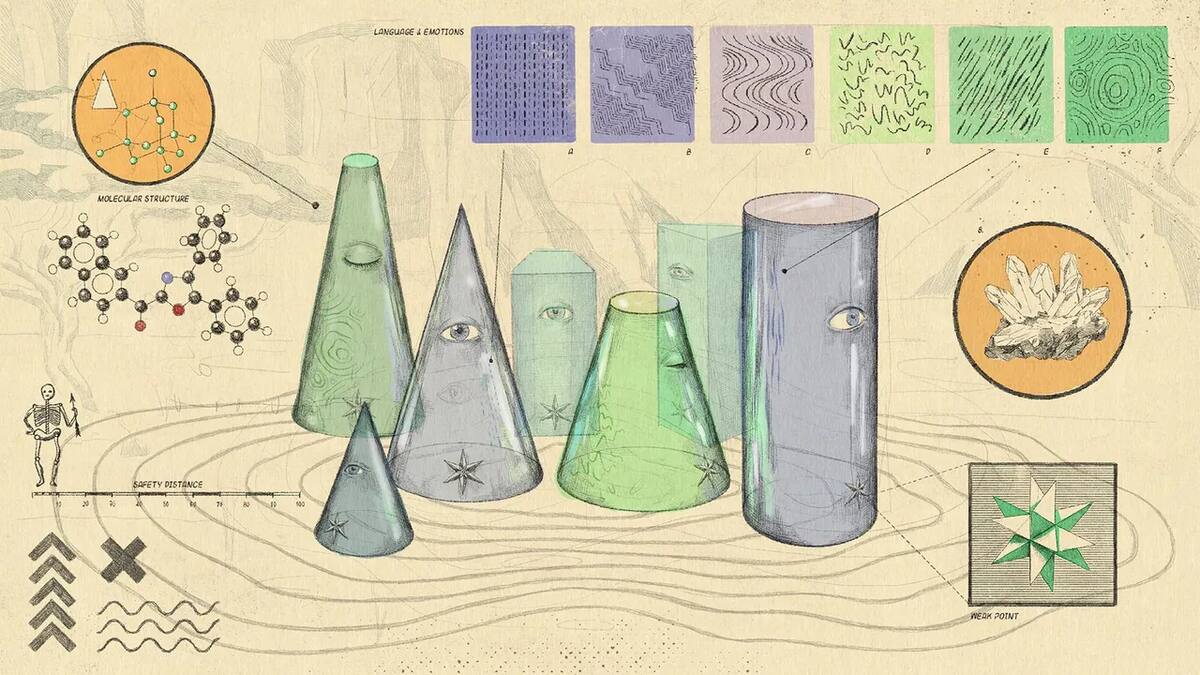 Las extrañas criaturas geométricas parecían "conos transparentes azulados" con la punta hacia arriba. Cada uno tenía aproximadamente la mitad del tamaño de un humano, con algunas marcas a rayas y "una estrella deslumbrante cerca de su base como el sol al mediodía".