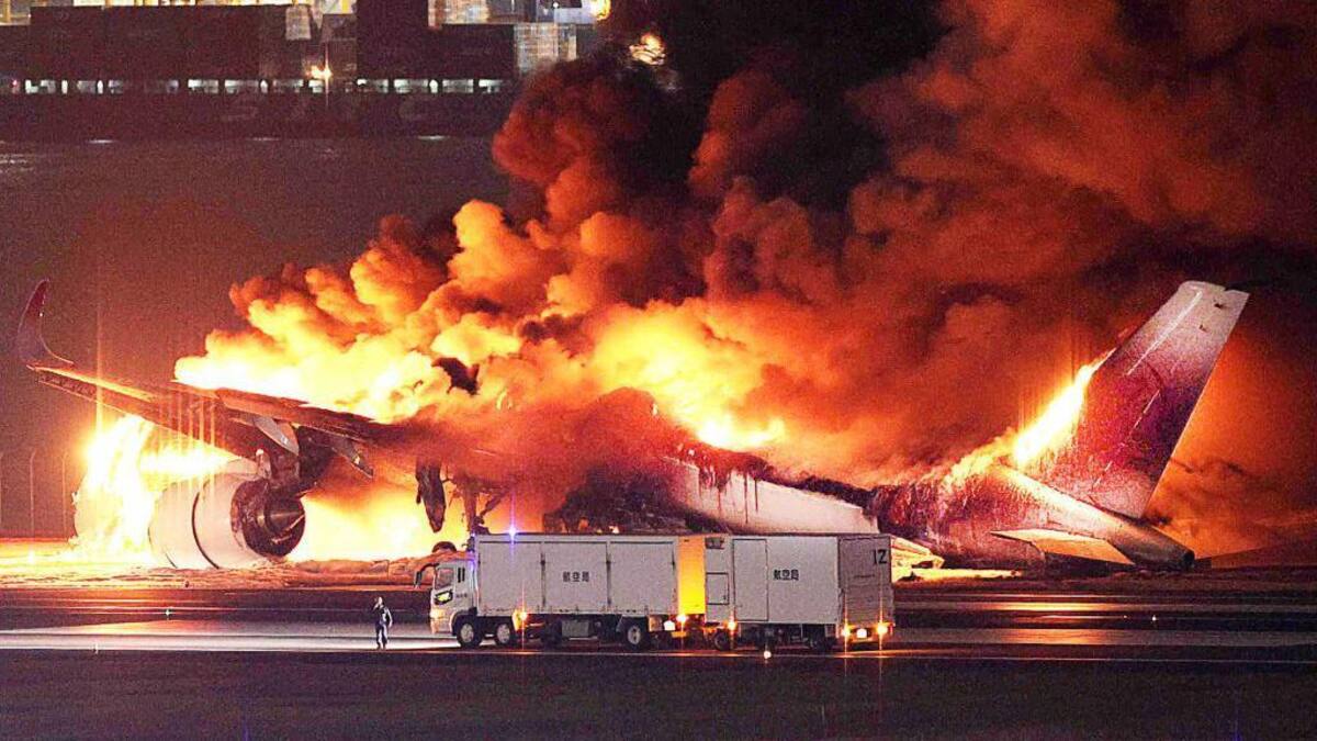 El avión chocó en la pista de aterrizaje del aeropuerto de Haneda de la capital japonesa con una aeronave de la Guardia Costera en la que viajaban al menos seis personas.