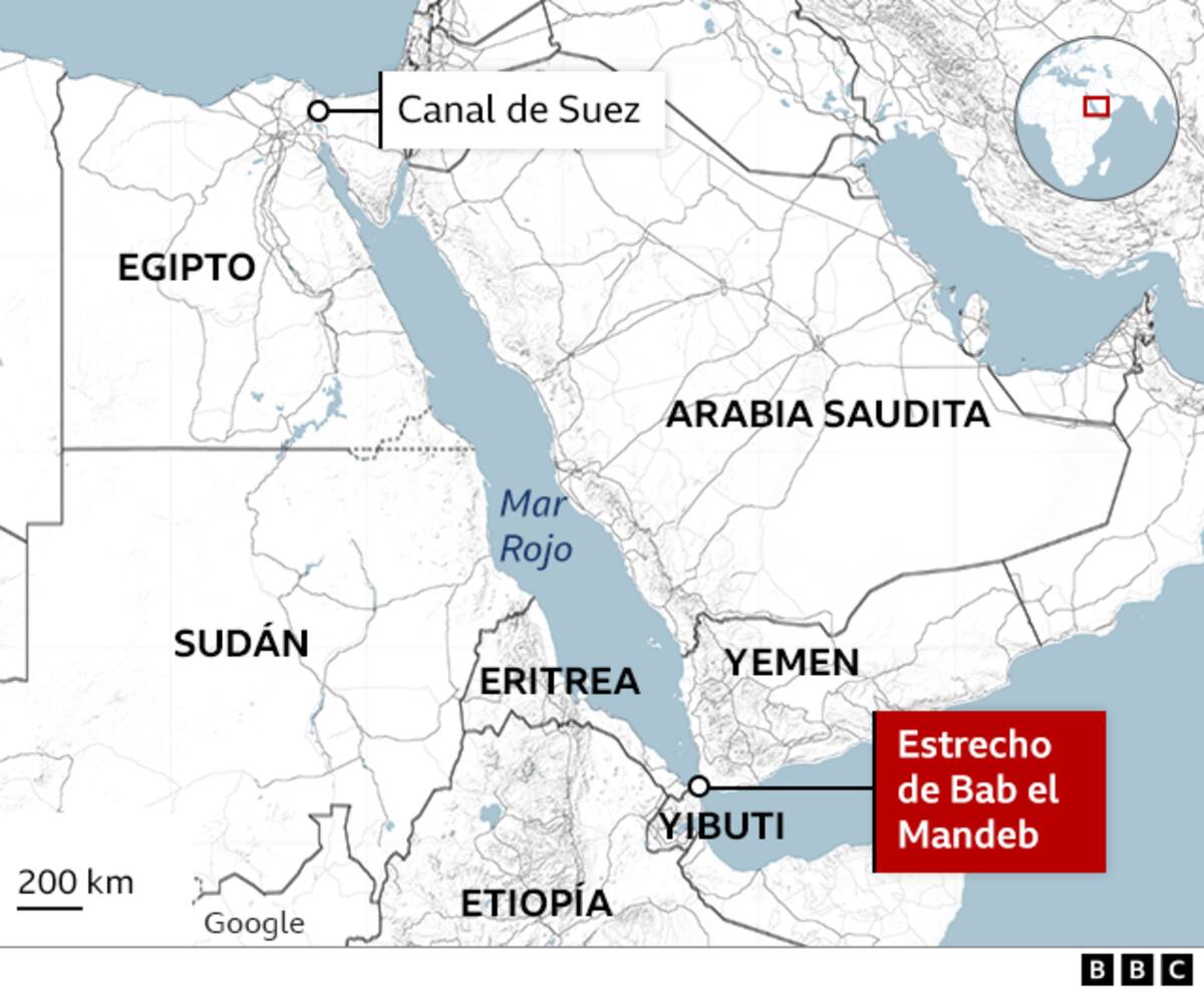 Cuál es la importancia estratégica del estrecho de Mandeb, la zona en que los hutíes atacan a los barcos en el mar Rojo