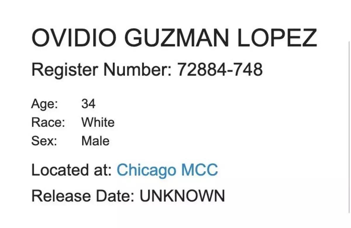 CULIACÁN, Sinaloa — Ovidio Guzmán López, hijo del célebre narcotraficante Joaquín Guzmán Loera, se encuentra actualmente recluido en el Centro Correccional Metropolitano de Chicago, según los registros del Buró de Prisiones Federales (BOP) de Estados Unidos.