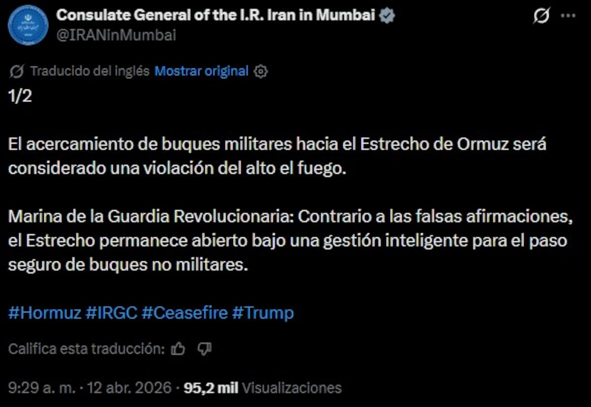 La declaración ocurre en respuesta directa al anuncio del presidente estadounidense, Donald Trump, sobre un bloqueo naval inmediato en la zona. De acuerdo con reportes de agencias como Reuters y medios estatales iraníes, Teherán sostiene que mantiene el control del paso marítimo bajo supervisión de su Armada.