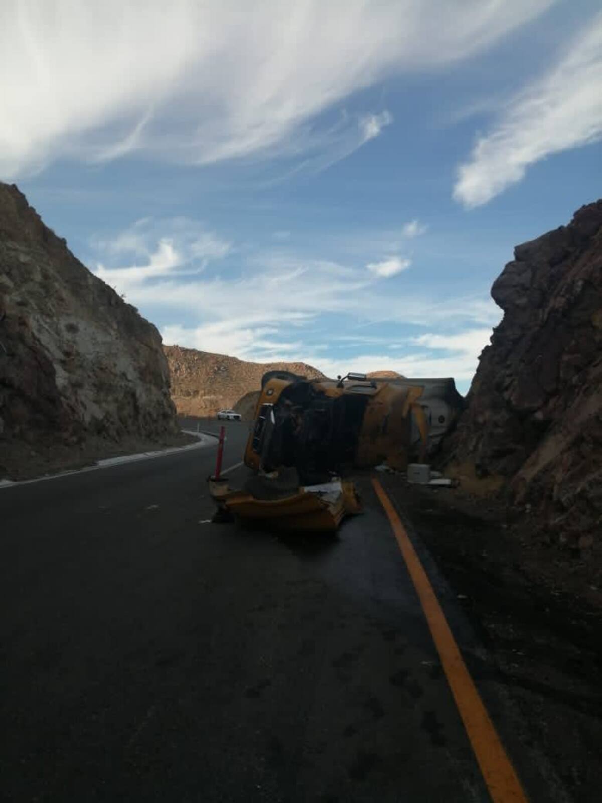 Al parecer a causa de la velocidad, el chofer del camión perdió el control de la dirección y volcó sobre la cinta asfáltica.