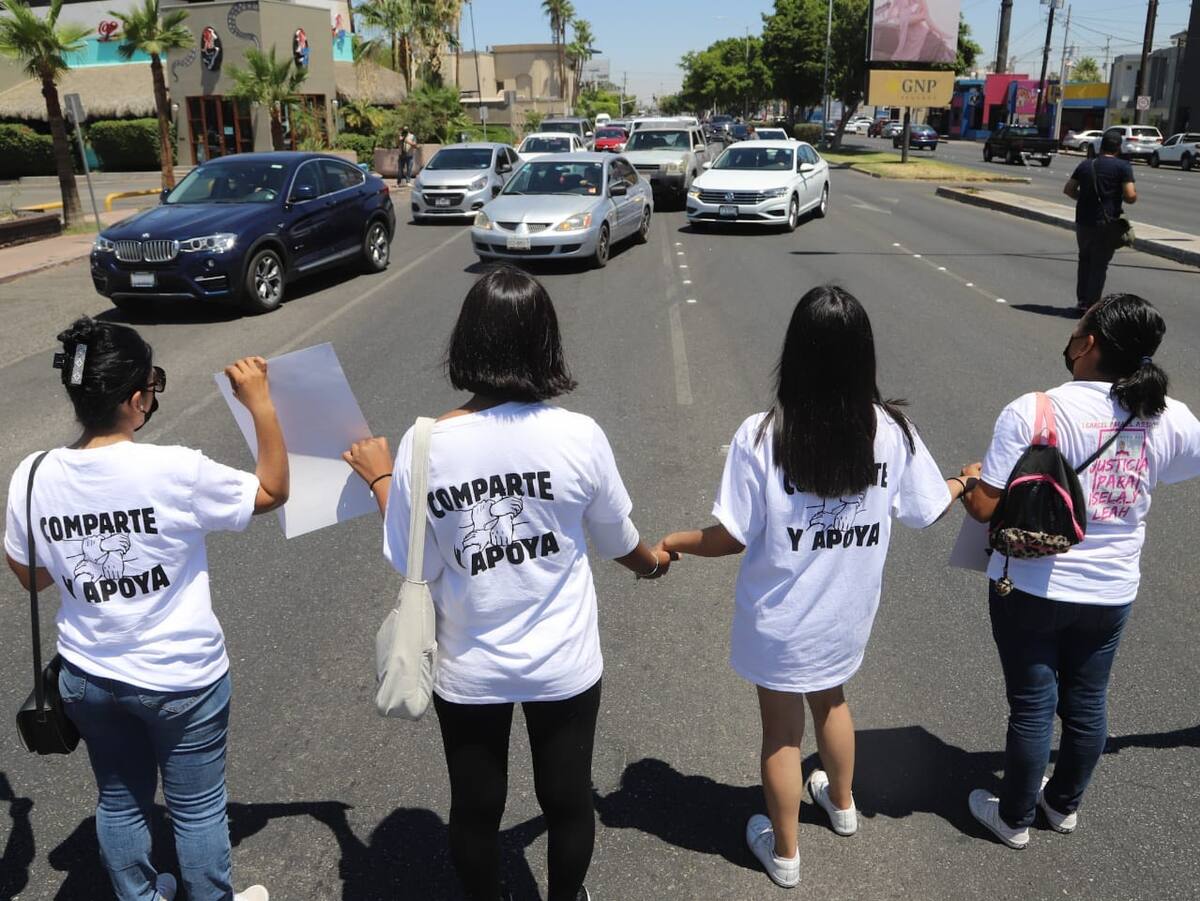 Formando una barrera humana, familiares y amigos de las fallecidas Rosa Isela y Leah, detuvieron el tránsito vehicular en el boulevard Benito Juárez exigiendo justicia por su muerte.