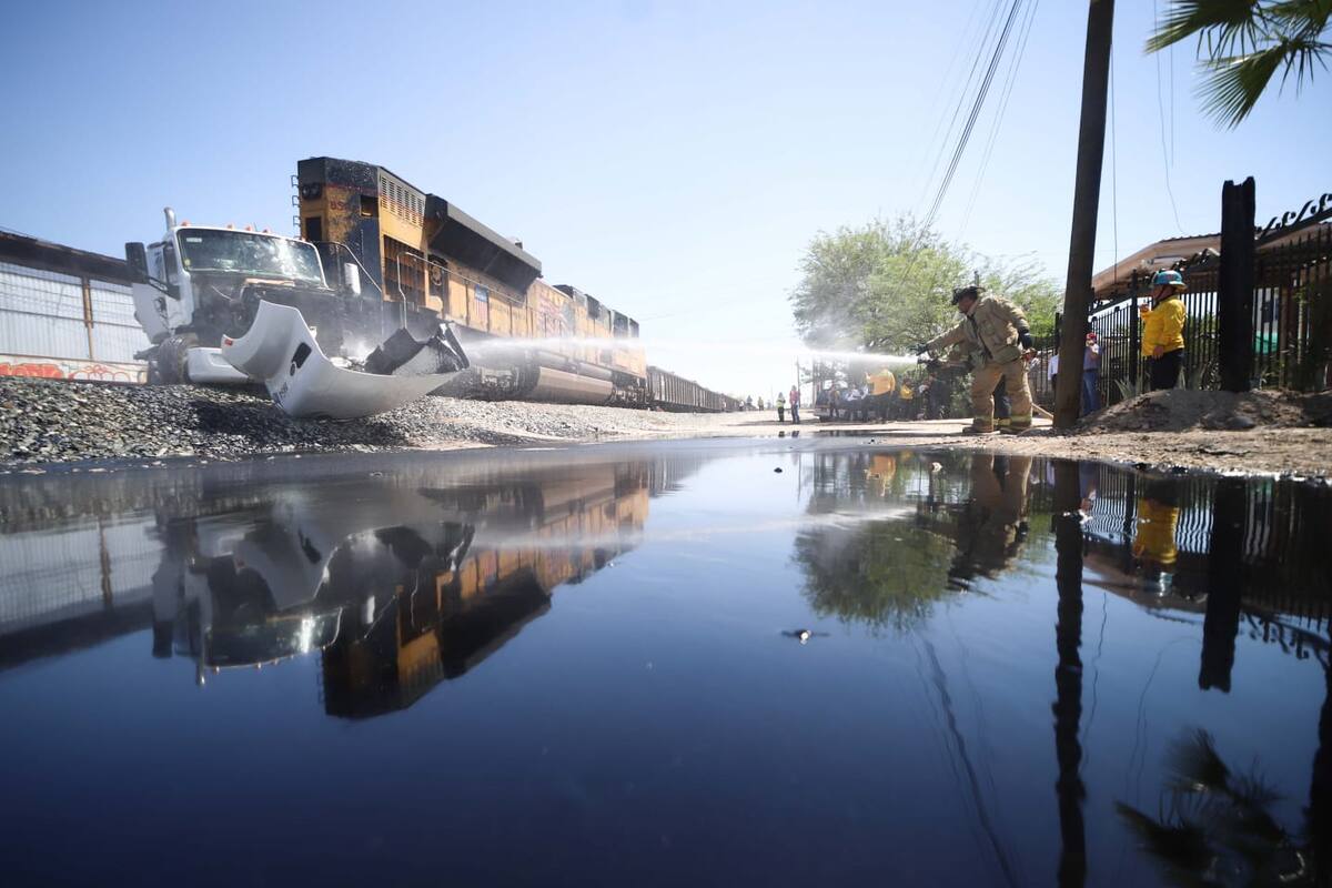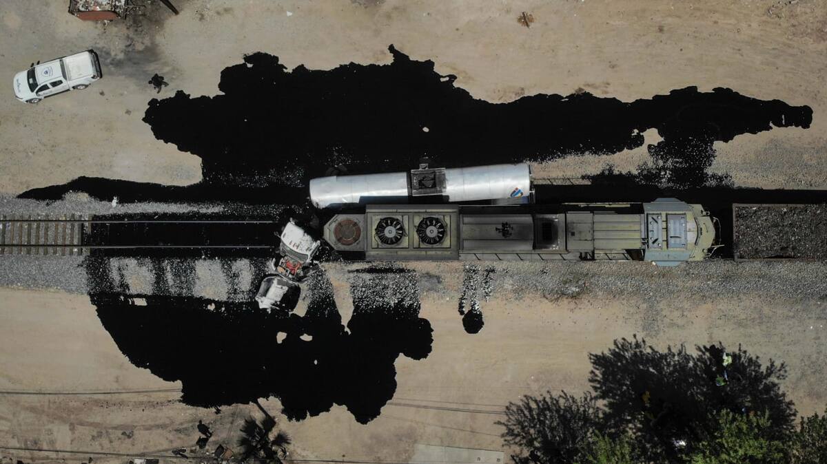 Tren embiste camión cisterna que transportaba brea
