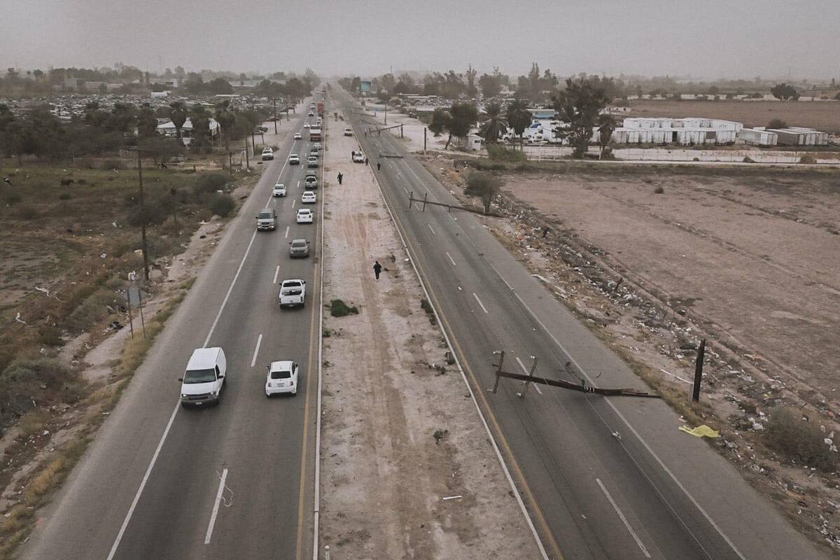 En la carretera San Felipe otro siniestro se registró de mayor magnitud con la caída de 11 postes de la CFE, dejando la vialidad inhabilitada y obstruyendo el paso a los conductores que se dirigían por la zona.