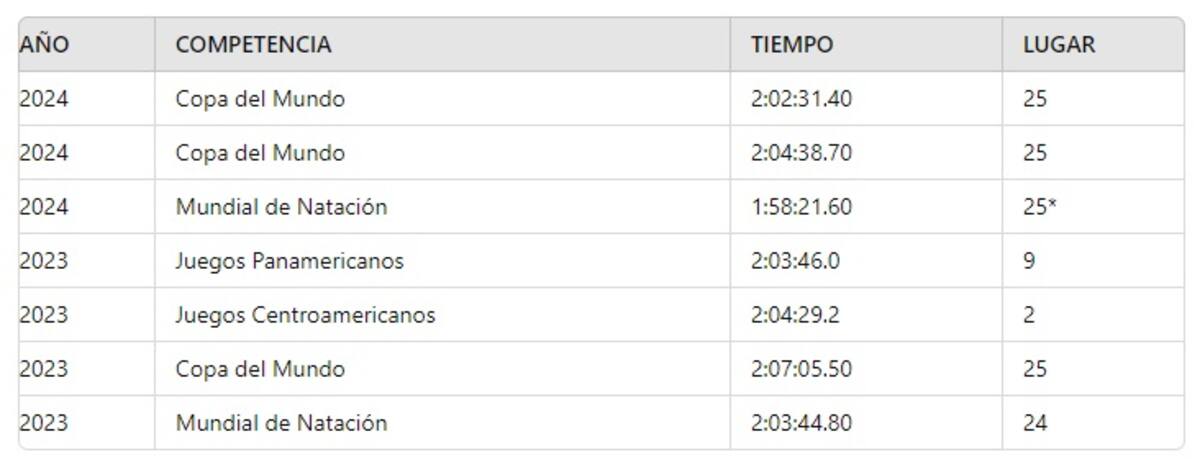 “Sabía que tenía la posibilidad de pasar por la mejor del continente. Ya cuando terminé, mucha gente me decía que lo había logrado, pero yo quería estar segura. Estaba muy nerviosa y temblando, pero cuando la World Aquatics sacó la lista definitiva, lloré de emoción”, aclaró.