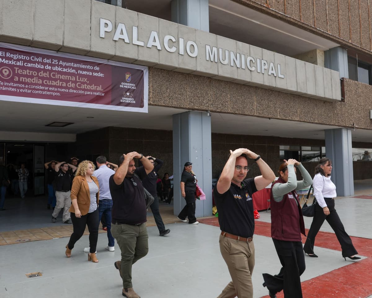 MEXICALI, B.C — A 16 años del sismo del 4 de abril de 2010, autoridades llevaron a cabo un simulacro de evacuación en el Palacio Municipal de Mexicali, como parte de un ejercicio simultáneo en los siete municipios de Baja California para reforzar la cultura de la prevención ante fenómenos sísmicos.