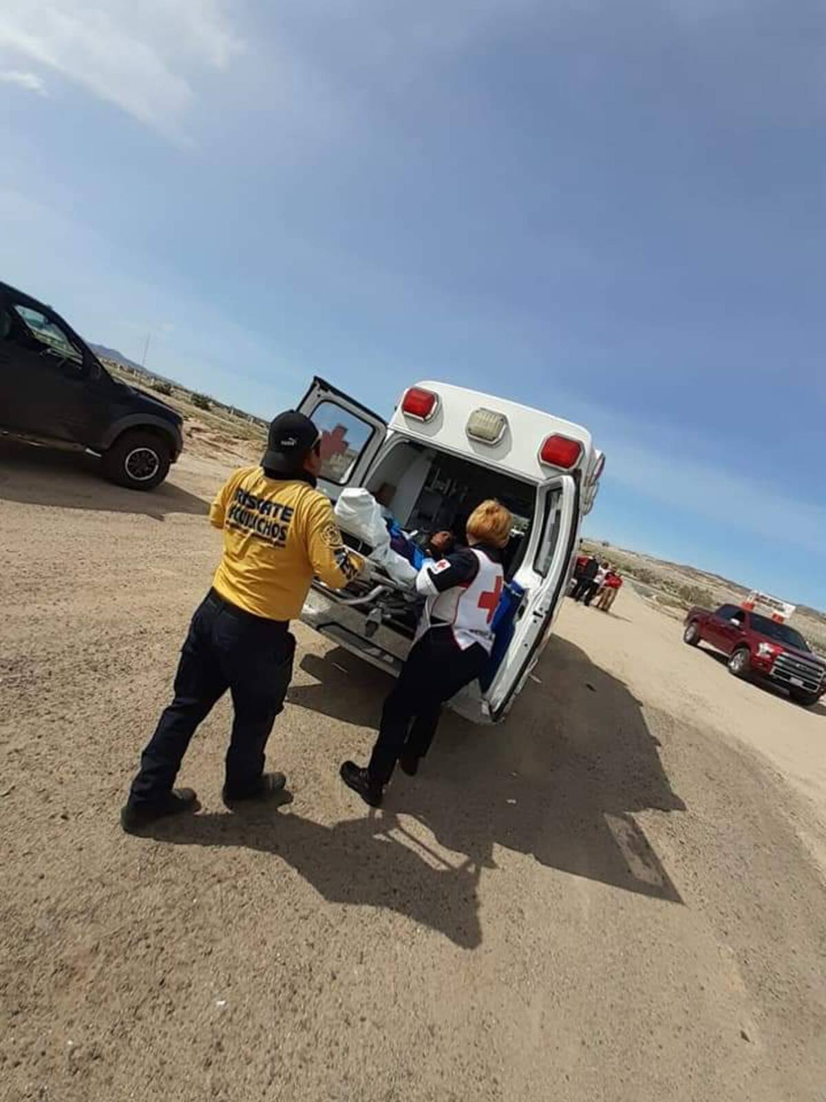 Los rescatistas los auxiliaron y la abordaron a un vehículo Razr de rescate y la llevaron a la carretera, donde fue atendida por paramédicos y en ambulancia fue trasladada a un hospital en Mexicali.