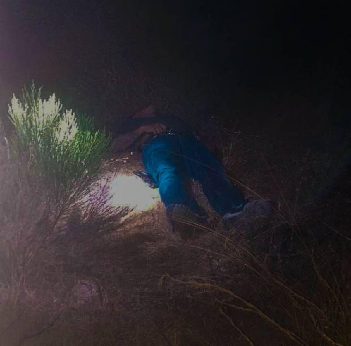 Entre arbustos y piedras encontraron a un hombre sin vida, de unos 25 a 30 años de edad, quien tenía una herida de bala en la frente.