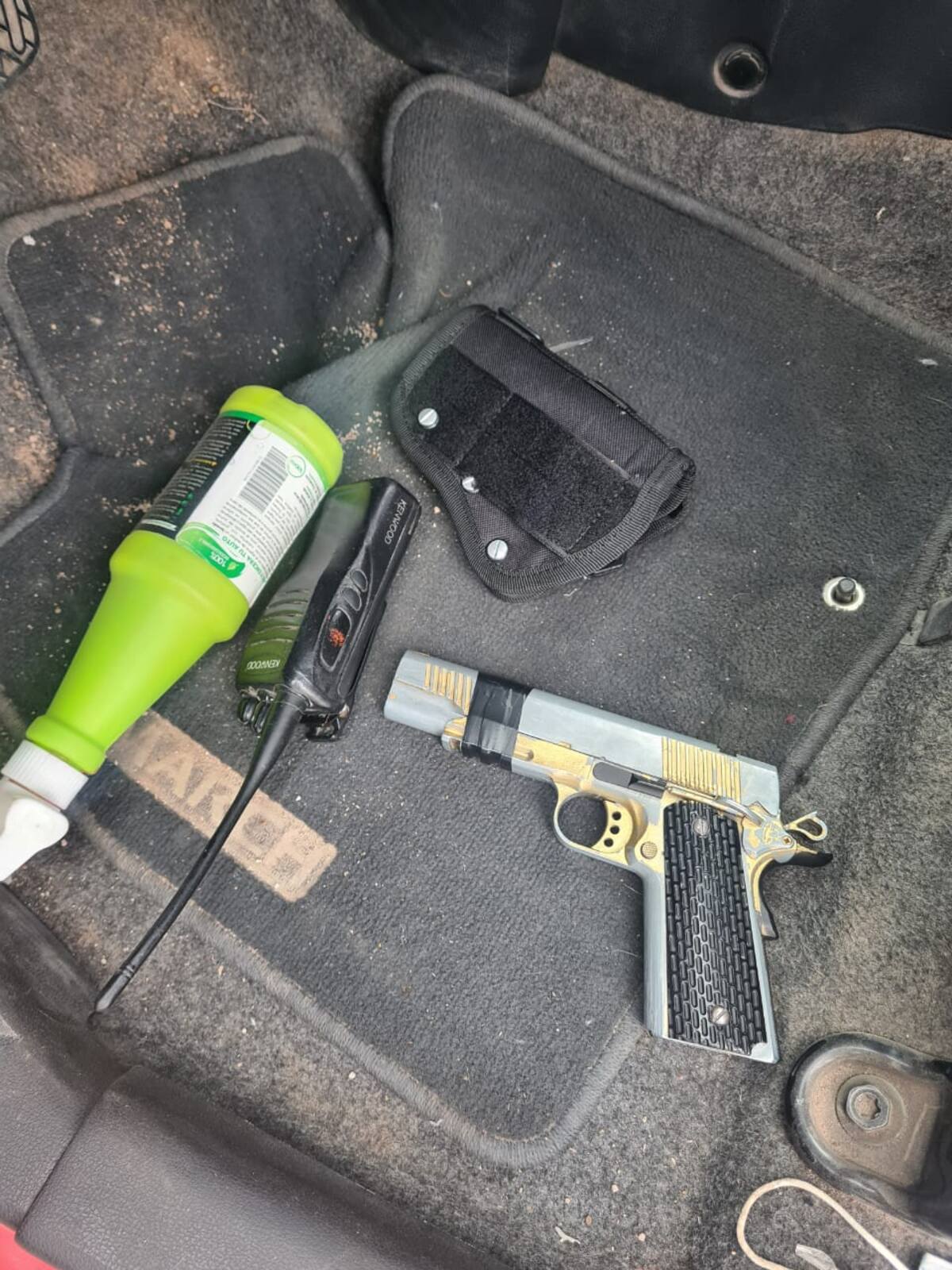 A los sospechosos se les aseguró una pistola de utilería y un radio de comunicación.