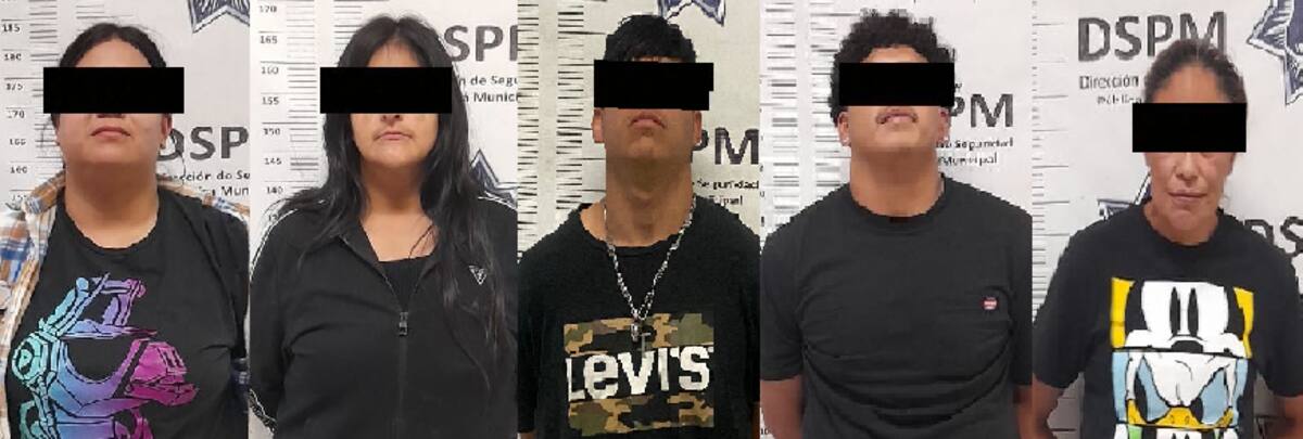 Tras solicitar apoyo, las cinco personas, identificadas como Ángel Antonio, de 22 años; Cristian Génesis, de 22 años; Luz Beatriz, de 37 años; Jesús, de 17 años; y Juana, de 32 años, fueron detenidas.