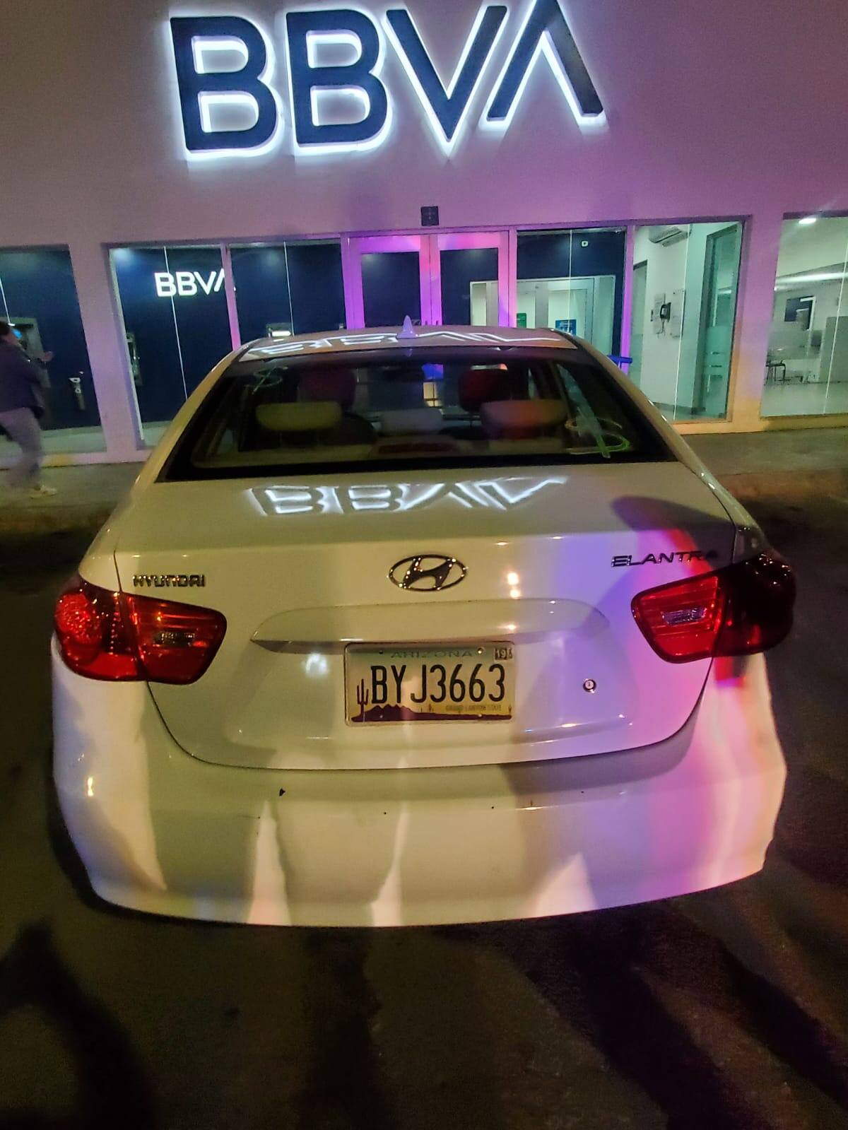A las 17:07 horas, C-5 alertó sobre la ubicación de un Hyundai Elantra, modelo 2009, color blanco, que había sido identificado por su propietario, un hombre de 26 años, como el mismo que le habían sustraído fuera de su domicilio.
