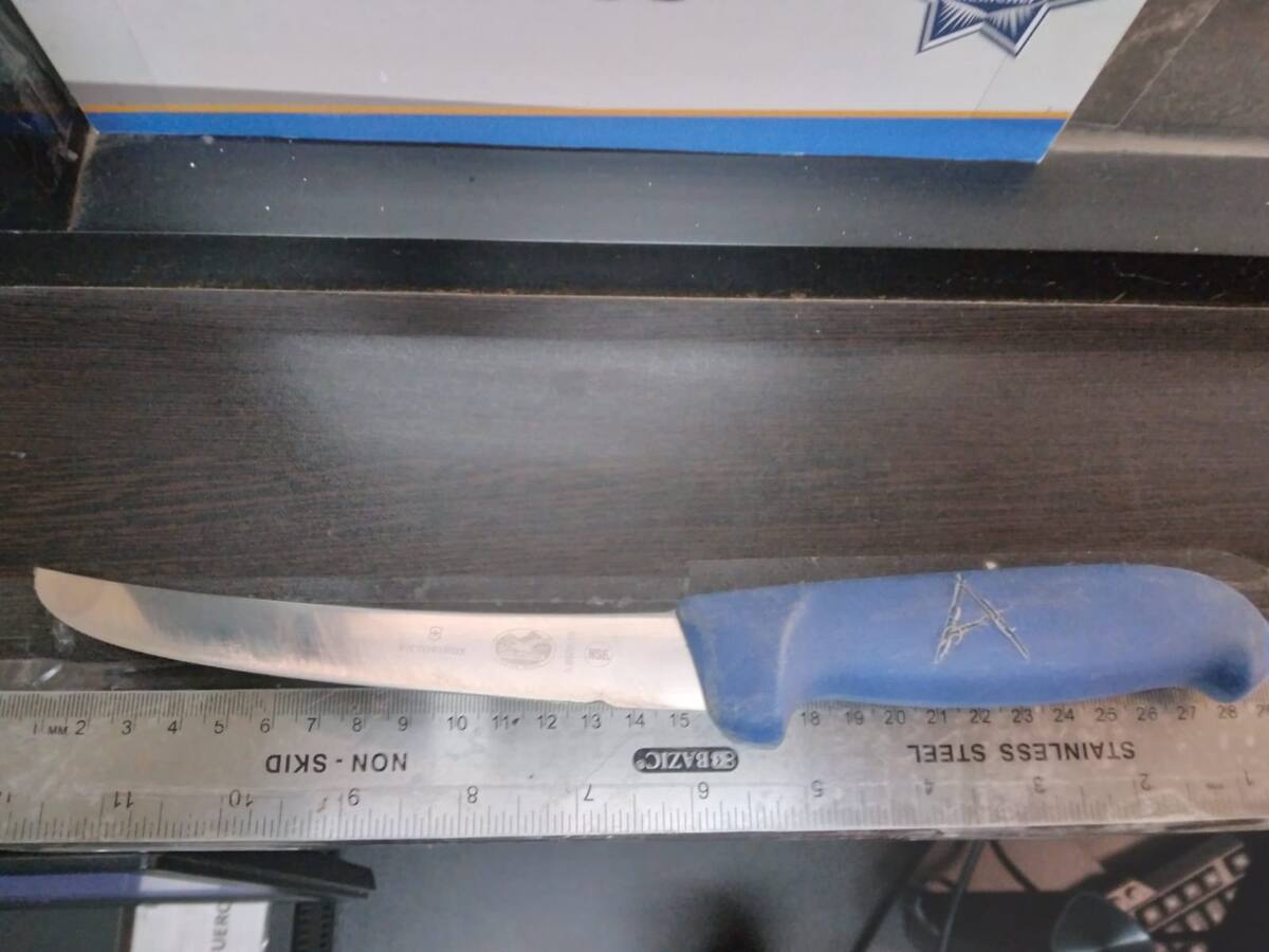 Durante la inspección corporal, al conductor se le encontró una navaja automática con hoja de metal en el bolsillo frontal derecho de su pantalón, mientras que al copiloto se le halló un cuchillo de cocina en el bolsillo derecho de su pantalón.