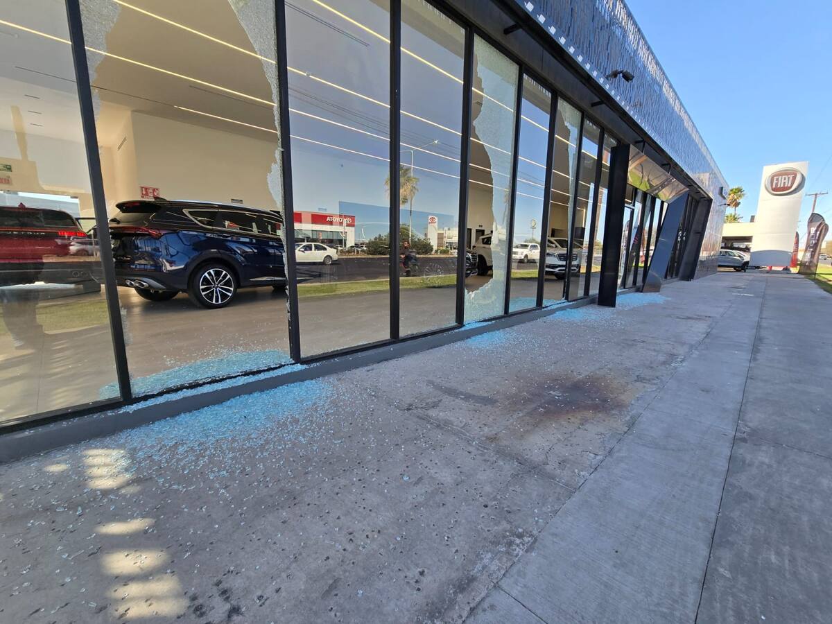 Alrededor de cuatro agencias de autos sufrieron daños en los cristales luego de que sujetos desconocidos dispararon con armas de postas.