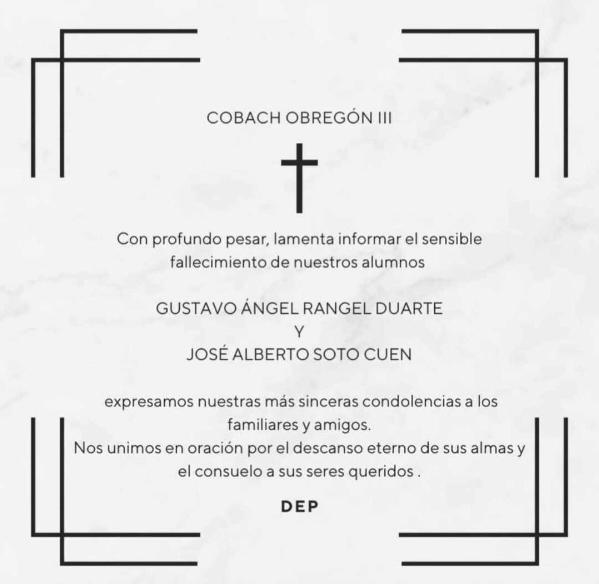 Ambos jóvenes eran estudiantes del Colegio de Bachilleres del Estado de Sonora (Cobach) Obregón III, ubicado en la colonia Villa Bonita.