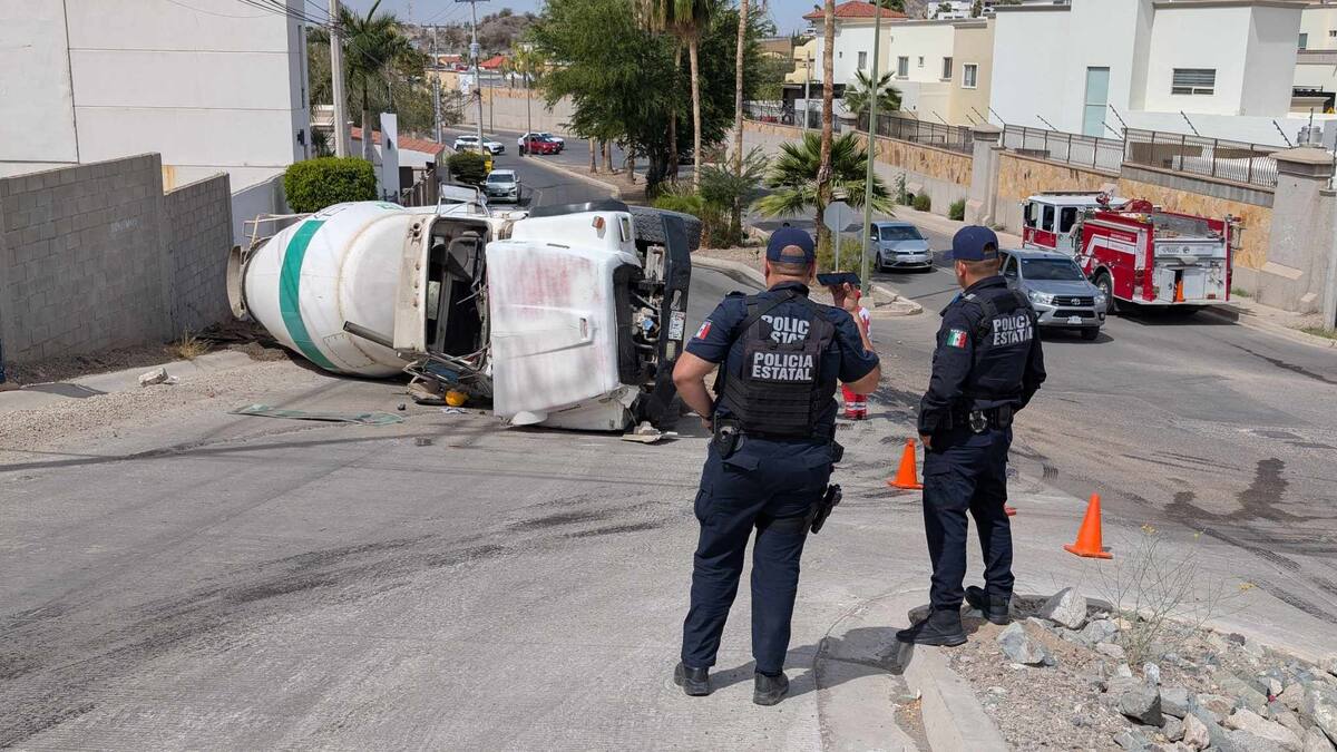 De acuerdo a los datos recabados en el lugar, el accidente se registró alrededor de las 12:20 horas, en la calle Gilberto Escoboza final, donde el conductor de un camión tipo revolvedora de concreto, se volcó sobre su costado derecho.