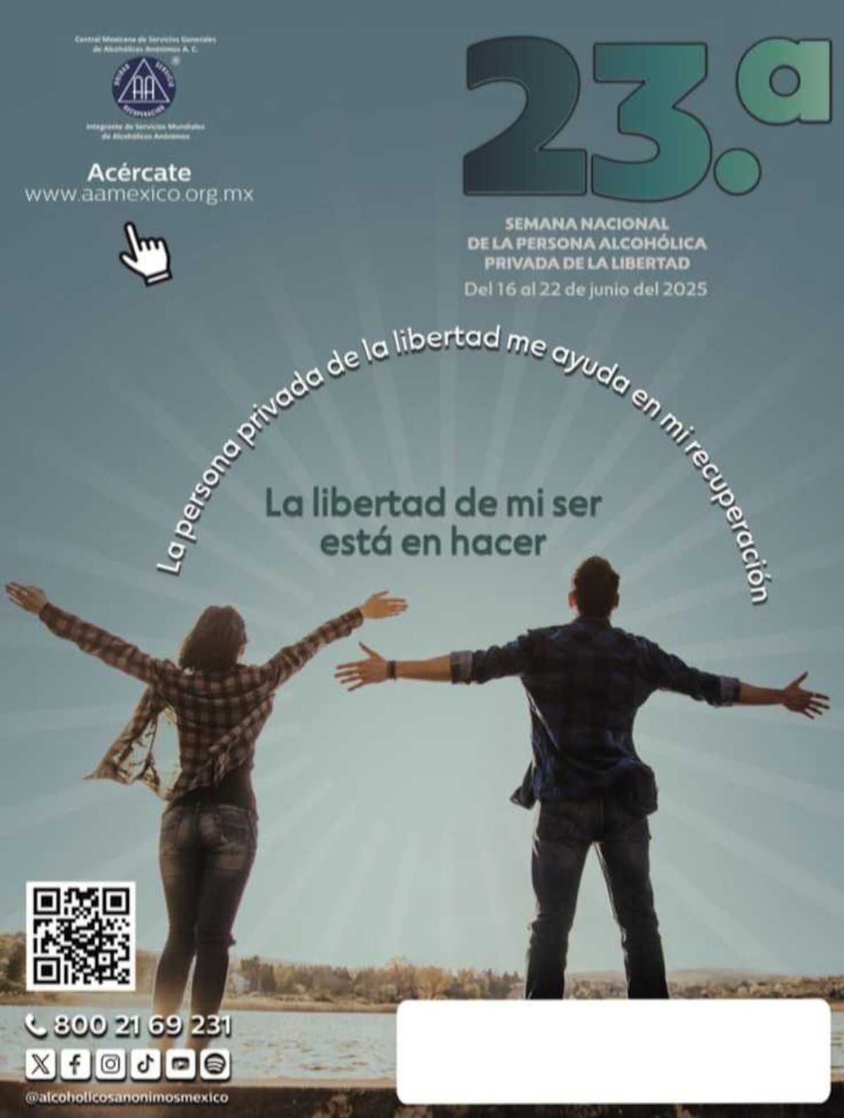 Del 16 al 22 de junio se lleva a cabo la 23 Semana Nacional de la Persona Alcohólica Privada de la Libertad, con el propósito de difundir el mensaje de recuperación dentro de los Centros de Readaptación Social del país.