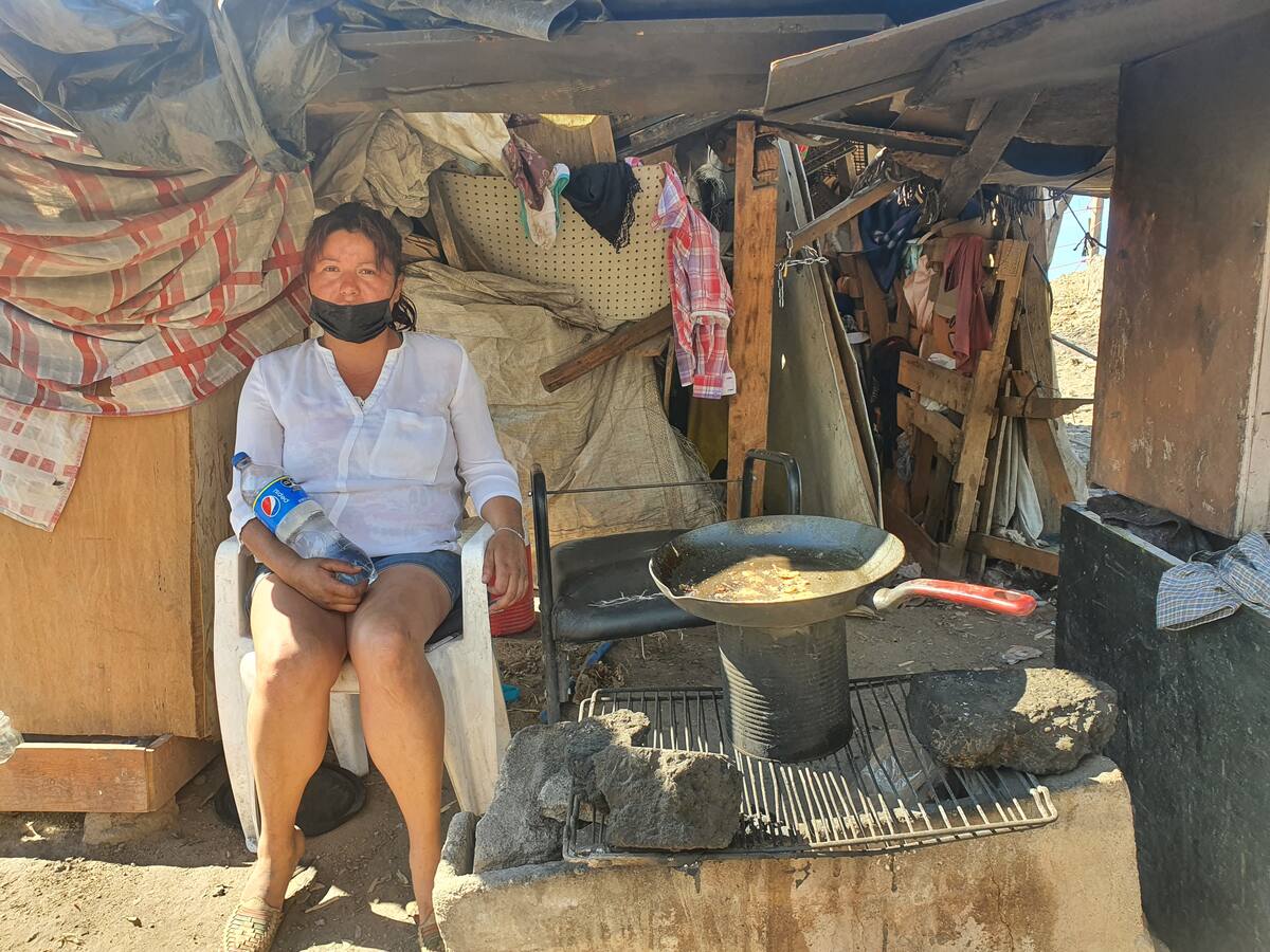 Soporta las altas temperaturas bajo una la lona que colocó en la entrada de su hogar, ya que no cuenta con electricidad ni agua, pero tiene la esperanza de encontrar un trabajo.