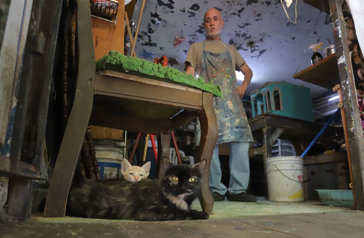 HERMOSILLO.- Con ayuda de cartón duro y material reciclado, Claus Krimpe fabrica rascadores para gatos a precios accesibles como la forma de sustento de él y de sus 27 gatos.