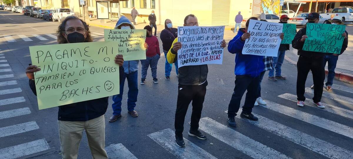 Jubilados y pensionados del Ayuntamiento de Hermosillo exigen devolución del apoyo en vales de despensa