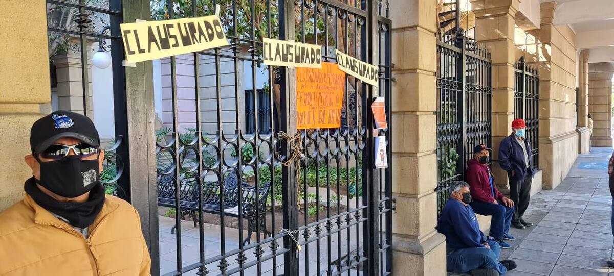 HERMOSILLO, Sonora.- Desde temprana hora, jubilados y pensionados del Ayuntamiento de Hermosillo bloquearon las entradas de Palacio Municipal para evitar el paso de los empleados, en protesta por la cancelación del apoyo económico en vales de despensa.