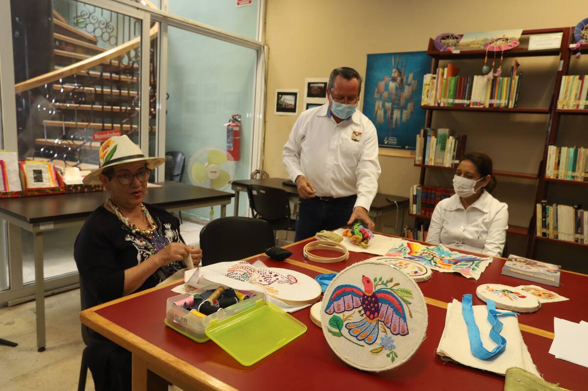 HERMOSILLO, Sonora.- Los coloridos bordados de Tenango llamaron su atención cuando los vio en Internet, conoció su historia y se preguntó “¿Y por qué no hacerlo?”, así Guillermo Valenzuela, de 50 años de edad, aprendió a bordar y ahora tiene un club de Lectura y Bordado en la Biblioteca Jaime Arellano, en el Centro de la ciudad.