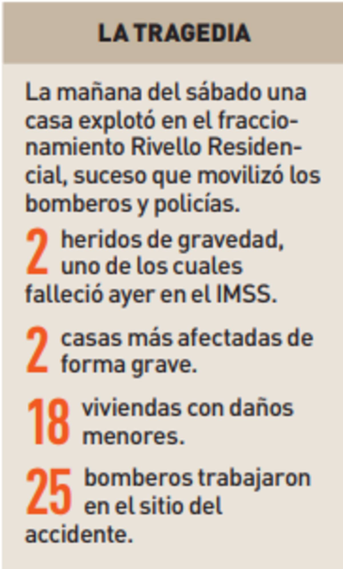 Según el primer informe de Bomberos, el siniestro pudo deberse a una acumulación de gas en la vivienda, además de que familiares de la víctima refirieron ya haber percibido el olor a esta sustancia una noche antes.