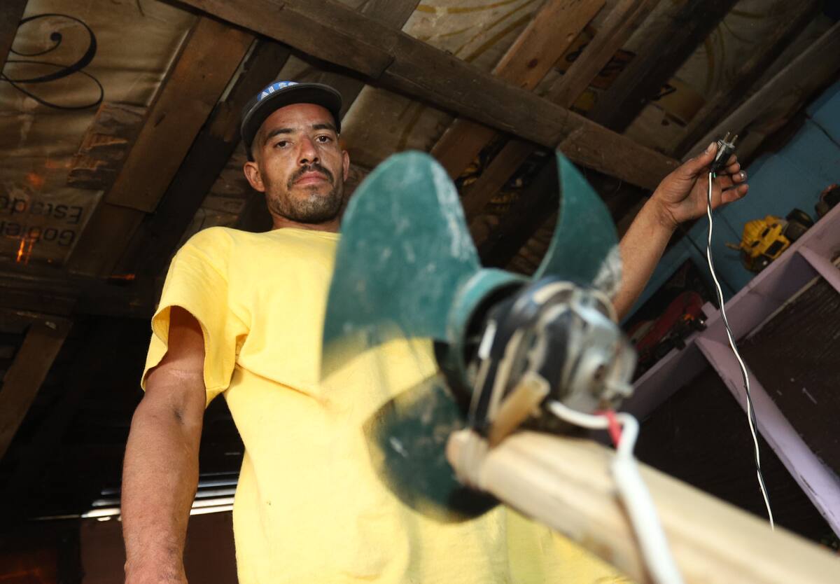 HERMOSILLO, Sonora.- Los habitantes de la invasión Guayacán se las han ingeniado para construir abanicos con piezas eléctricas que encuentran en la basura y así poder mitigar las altas temperaturas del verano hermosillense.