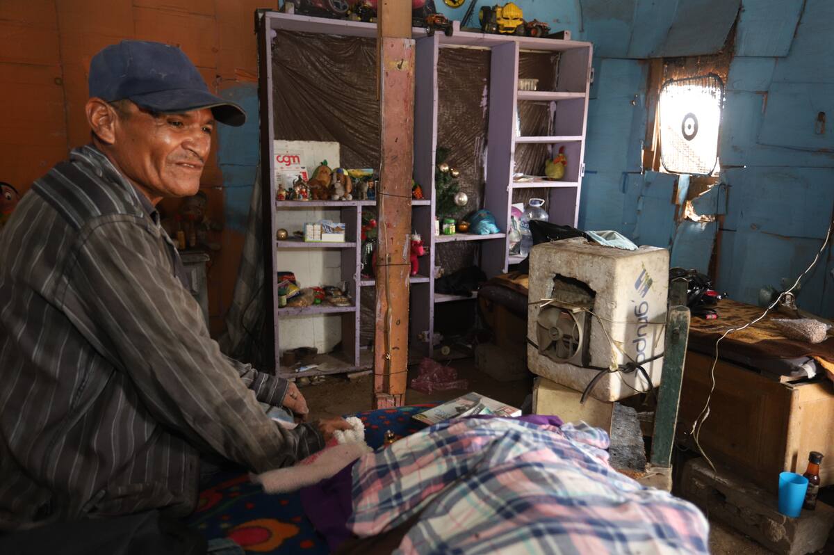 Ella vive en un cuarto de material de cartón con cuatro personas más y en las noches aseguran que las altas temperaturas bajan y pueden dormir sin problemas.