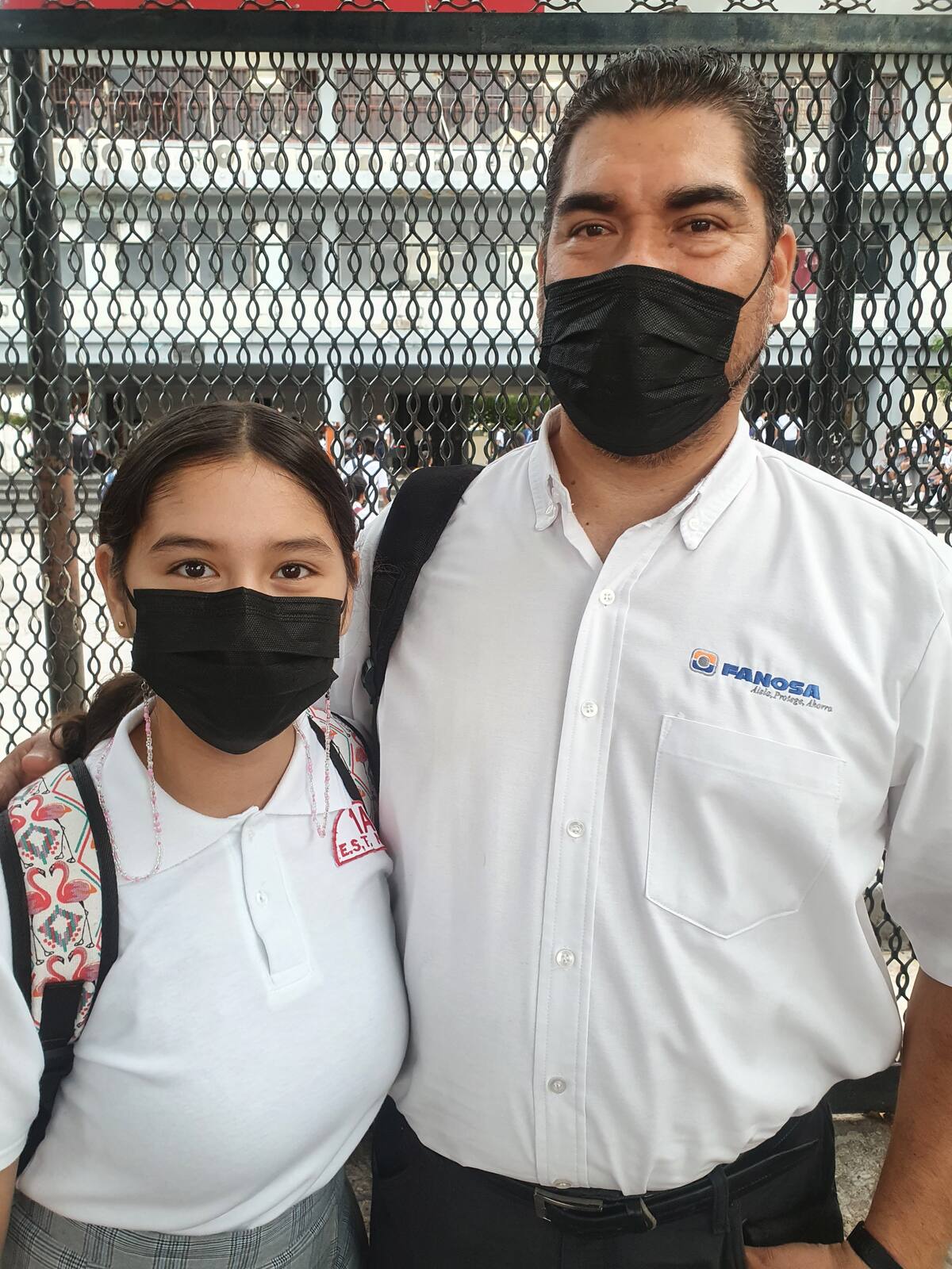 Ricardo Santos acompañó a su hija Cecilia Noemí Santos a su primer día de clases tras dos años de permanecer fuera de las aulas debido a la contingencia sanitaria.
