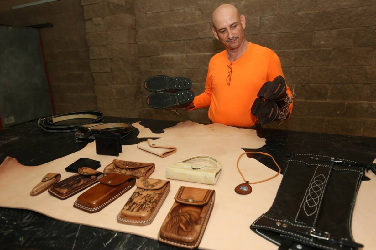 Teguas, zapatos, billeteras, monederos, fundas para celular, porta encendedores, porta vasos, fuetes, bozales, cintos, sandalias, carteras y hasta sillas de montar, son algunas de las cosas que ha realizado Jorge desde hace apenas un año, que es cuando se aprobó la actividad en el Centro.