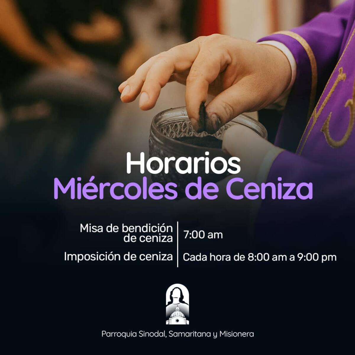 - Imposición de la ceniza cada hora de 8:00 AM a 9:00 PM.