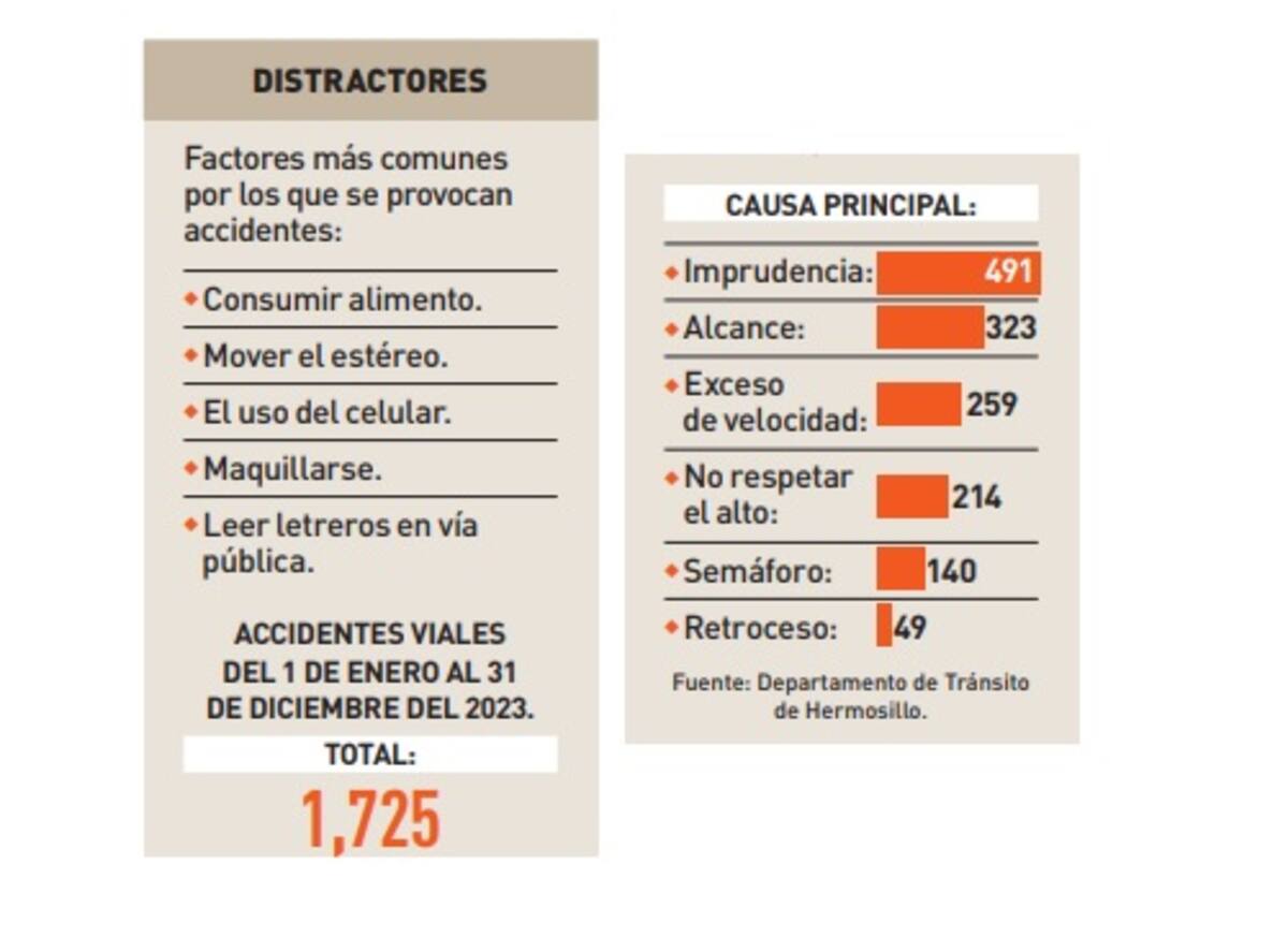 De acuerdo con las cifras de la Policía Municipal el total de accidentes viales presentados del 1 de enero al 11 de febrero en Hermosillo son cerca de 182, han dejado un saldo de 75 lesionados y un deceso.