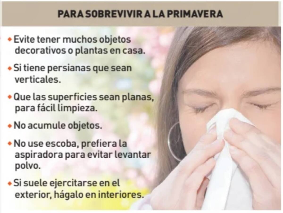 A quienes ya han sido diagnosticadas con alergias, les recomendó evitar en casa tener muchos objetos decorativos o plantas, que puedan propiciar una mayor acumulación de polvo.