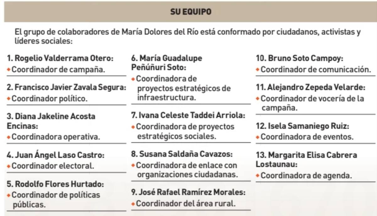 Un equipo paritario, complementado además por un consejo de mujeres y jóvenes, acompañará a la abanderada de Morena en la contienda de 43 días, que arrancará este sábado 20 de abril a las 17:30 horas en la colonia Pueblitos.
